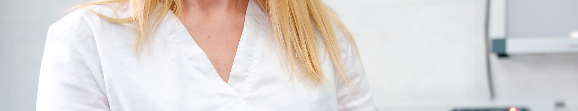 женщина доктор со светлыми волосами в белом халате